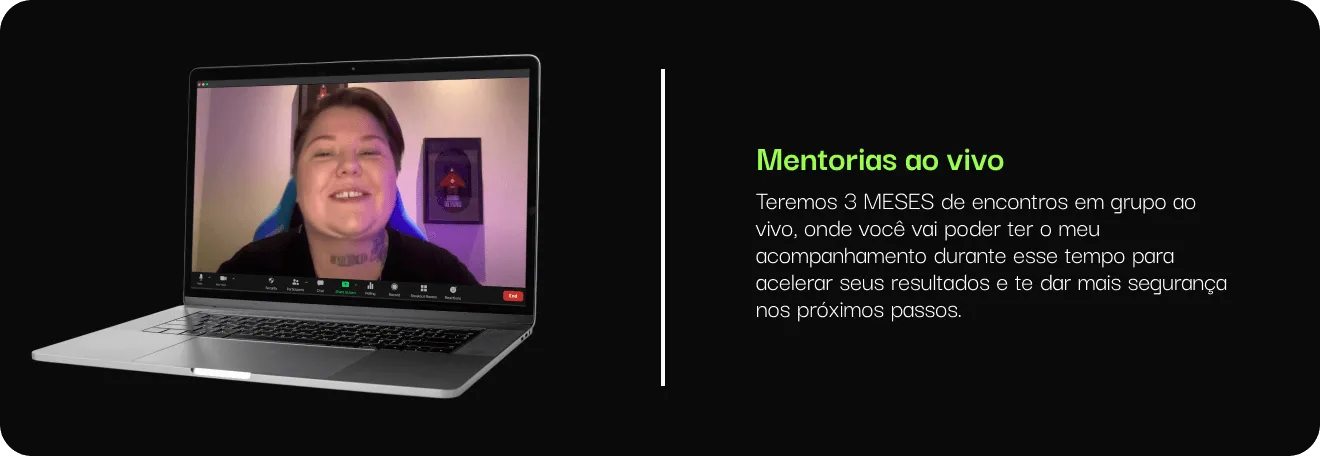 Se em até 6 meses, após assistir todas as aulas, participar de todas as mentorias ao vivo e aplicar tudo com investimento real, você não recuperar o valor da formação ganha uma mentoria individual comigo.